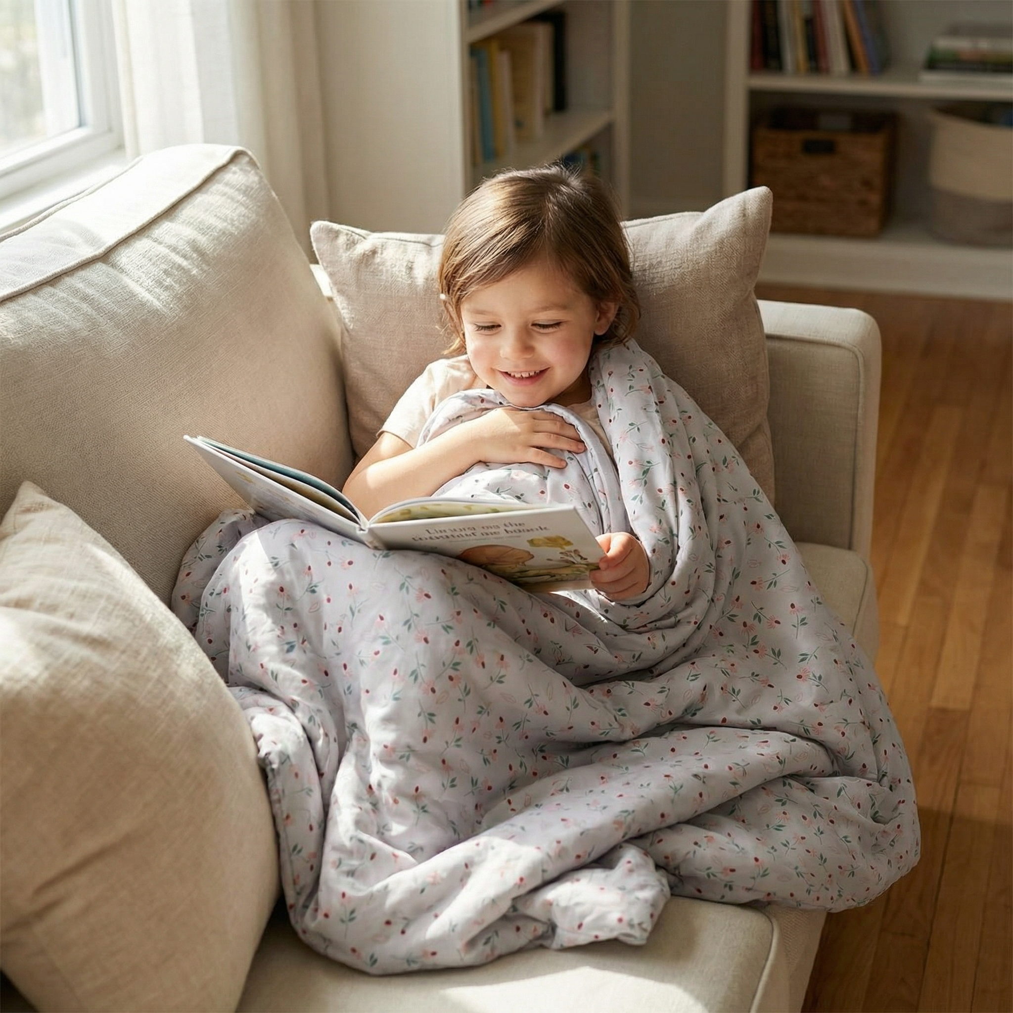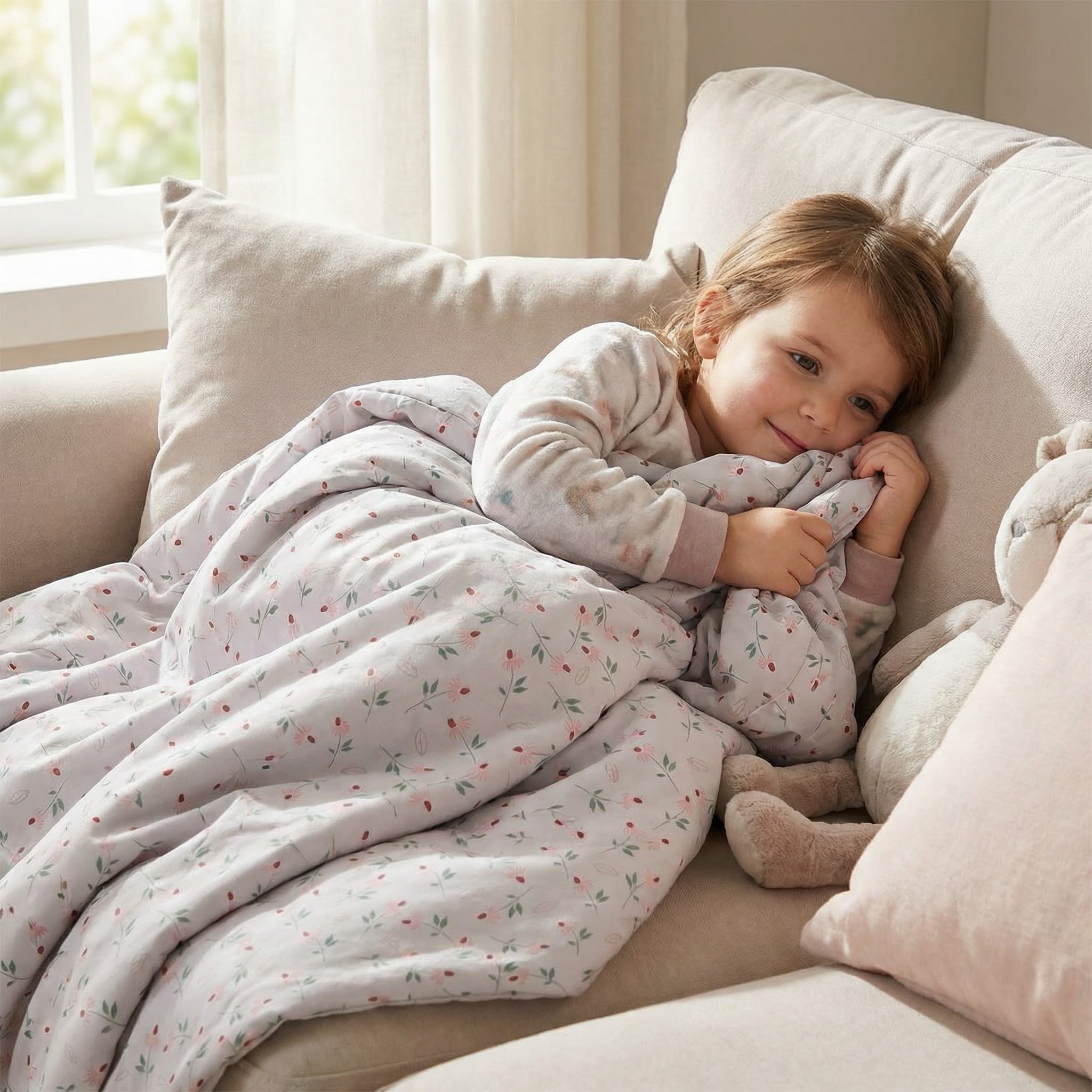 Manta terapéutica original - Manta de peso con margaritas y funda de algodón para niños