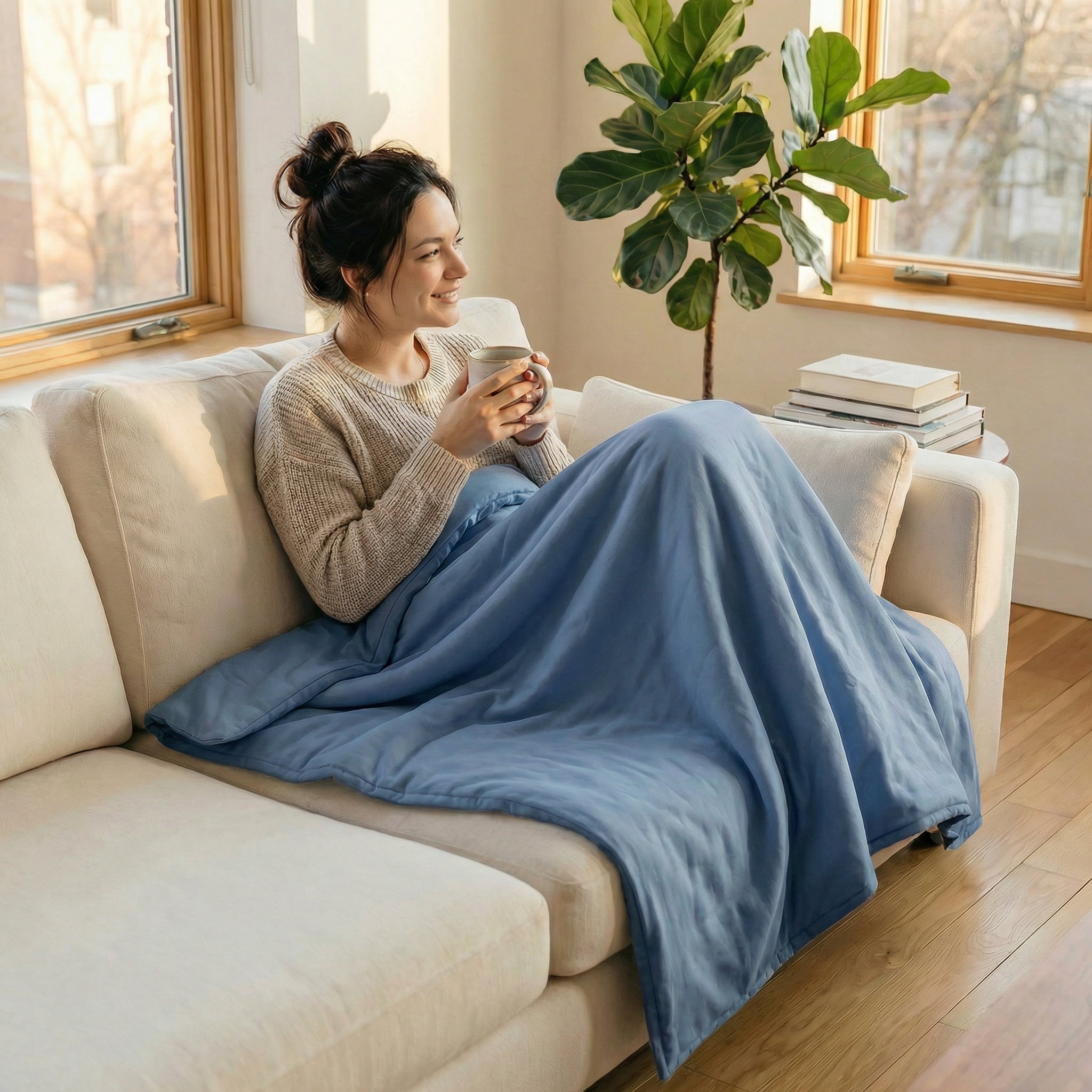 The Therapy Blanket (formerly Gravity) is the best-known weighted blanket in Europe, as it has been on the market since day one. The cover and inner lining of the Therapy Blanket are connected either via loops or a zipper. The even distribution of the glass beads in the chambers makes the blanket particularly snug.